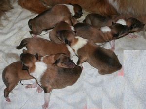 | Nachdem Gerry eigentlich schon vor 3 Jahren der Vater von Zambas erstem Wurf werden sollte, haben wir es nun noch einmal versucht und es hat wirklich geklappt, die unwiderstehliche Zamba konnte unserem alten Herrn so sehr den Kopf verdrehen das er nun mit bald 11 Jahren noch einmal Vater wurde. Wir freuen uns sehr über diese Welpen. | |