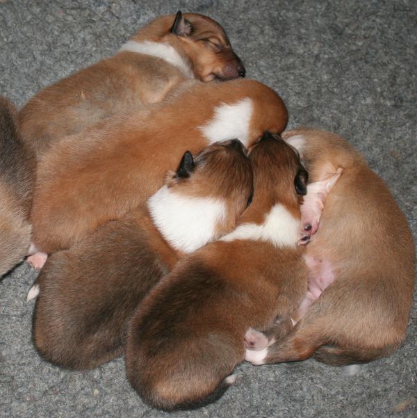 ![]() Im Vordergrund die 5 Mädchen und hinten im Tiefschlaf die Rüden |